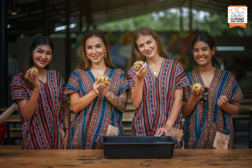 After meeting all the elephants, accompany them to a mud spa. Get muddy with the elephants as you apply a healthy mud treatment to their skin. Next, walk with them to a pool and join them in the water. Take a swim and help bathe and brush the elephants while they wade through and play in the water.